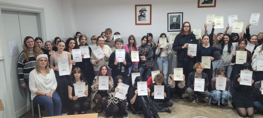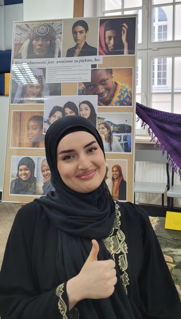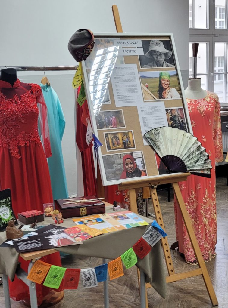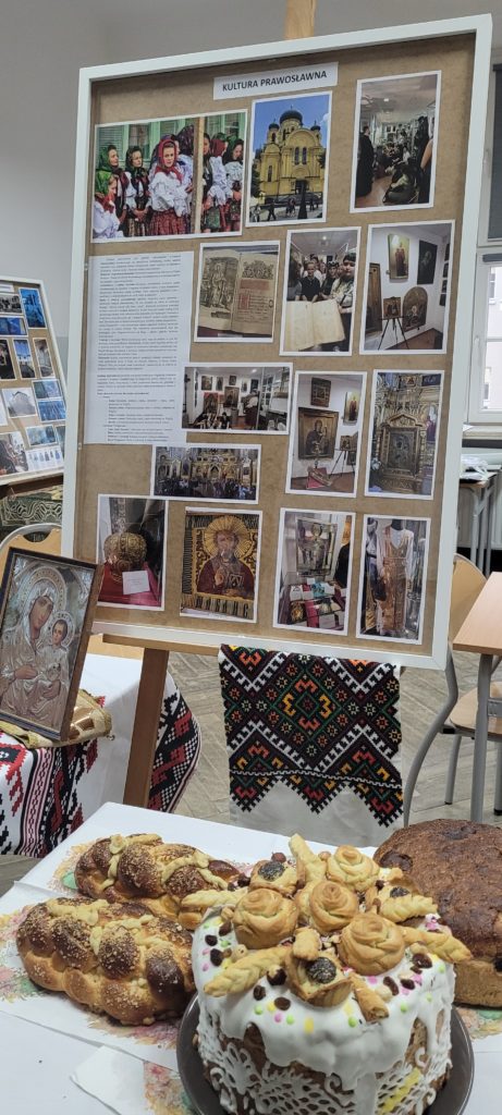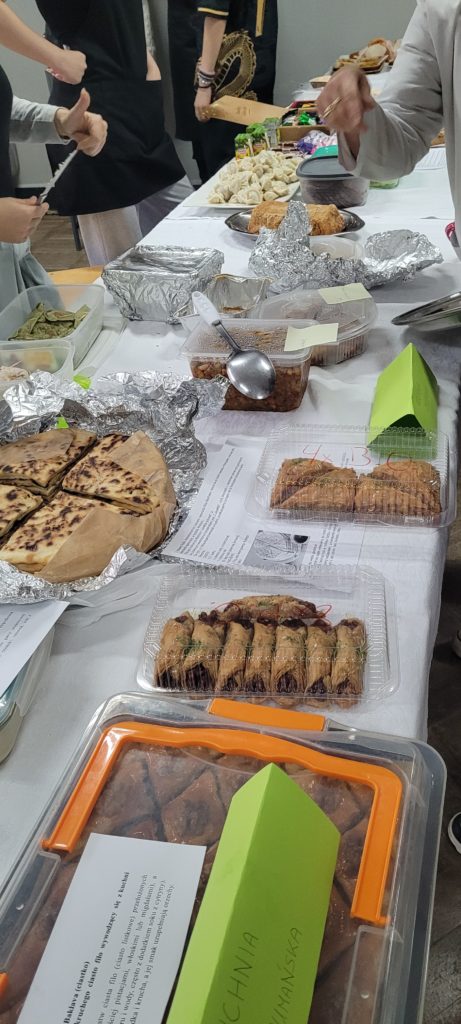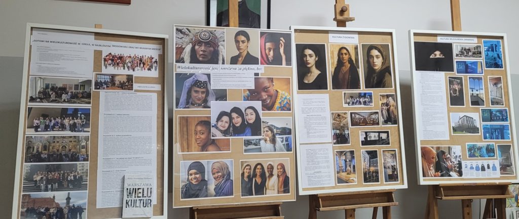 Pod koniec listopada zakończył się kilkumiesięczny projekt WIE, a podsumowanie, które odbyło się 4 grudnia, opisywało jego działania, cele i efekty. Projekt promował współistnienie różnych kultur i tradycji w szkolnej społeczności i najbliższym środowisku, pokazywał, jak ważne są działania w budowaniu otwartego społeczeństwa obywatelskiego. Młodzi ambasadorzy wielokulturowości z klas 3TMA, 3TMB, 3TSA we współpracy ze szkolnym wolontariatem przygotowali tego dnia pyszny poczęstunek. Kuchnia Świata serwowała potrawy z tradycji prawosławnej (pielmieni, korowaje, kutię), muzułmańskiej (humus, czepałgasz, baklawę), żydowskiej (babkę ziemniaczaną, czulent) i azjatyckiej (sushi, mochi, ciasteczka kokosowe). Na stoiskach znalazły się autentyczne przedmioty i artefakty, które odzwierciedlały unikalne sposoby życia, wartości i tożsamości poznawanych kultur. Można było więc zobaczyć żydowską menorę, muzułmański dywanik do modlitwy, strój prawosławnego metropolity oraz cerkiewne ikony, kolorowe suknie kobiet ze świata Orientu i wiele, wiele innych. Ogromne zaangażowanie uczniów w projekt oraz jego finał zostało nagrodzone upominkami oraz dyplomami i dowodzi, jak ważne i potrzebne były to działania. Uczestnicy projektu zdobyli nowe kompetencje w zakresie edukacji międzykulturowej. Dowiedzieli się, że Warszawa jest miastem wielokulturowym oraz w czym się ta wielokulturowość przejawia.